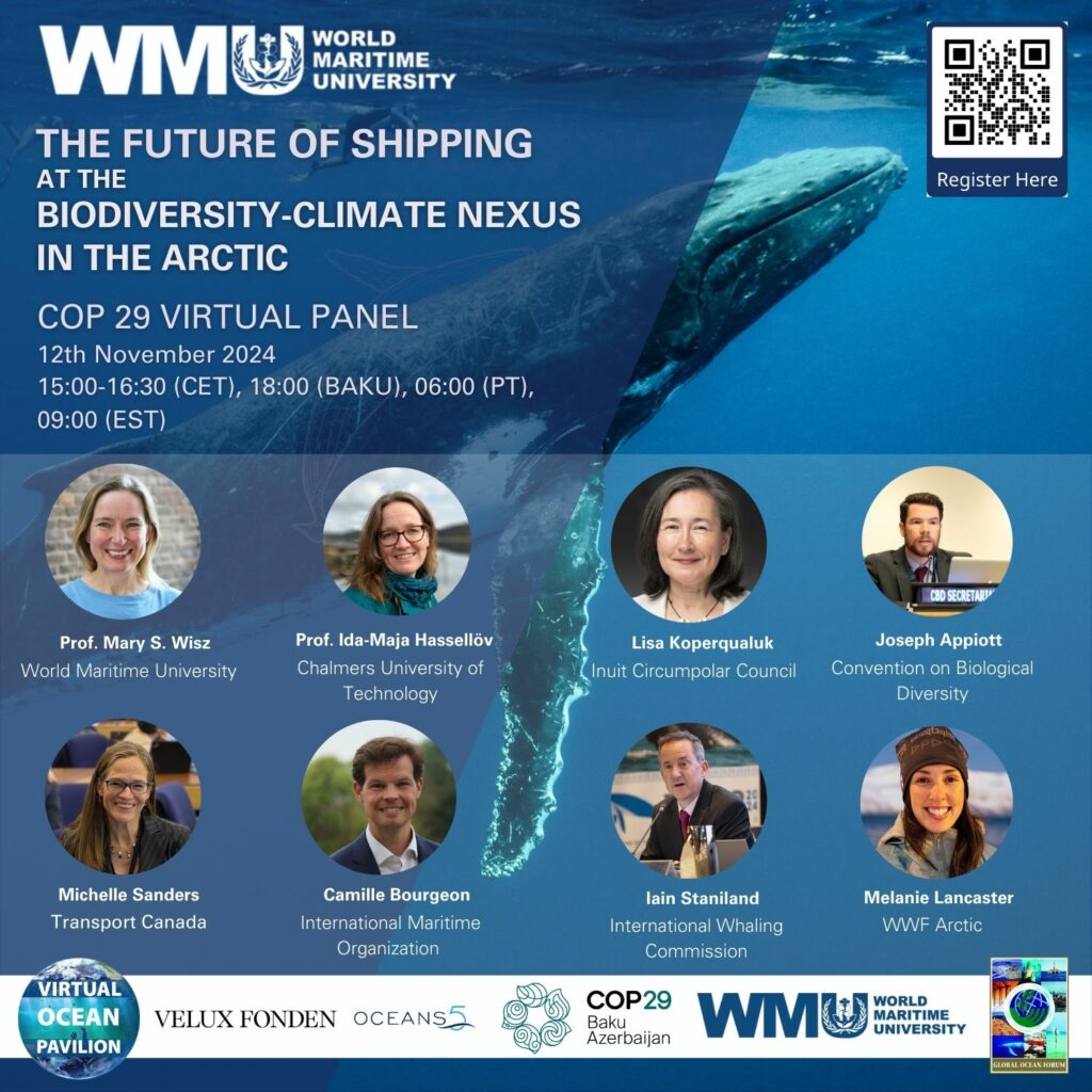 The World Maritime University (WMU) is hosting a COP29 virtual side event, The Future of Shipping at the Biodiversity and Climate Nexus in the Arctic, hosted by the Global Ocean Forum Virtual Ocean Pavilion.
