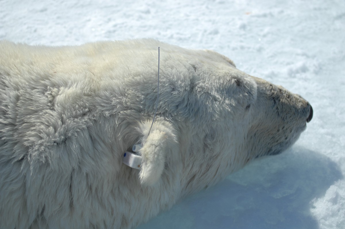 Male polar bears are fitted with ear tags because the collars slip off their necks. Photo: Andrew Derocher