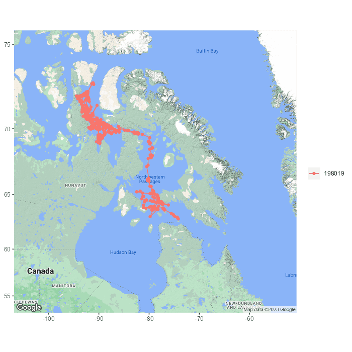 This is how the same bowhead whale continued its migration journey until the end of December 2022. This whale had entered Hudson Strait, bowhead whales’ wintering grounds, by the end of December 2022.