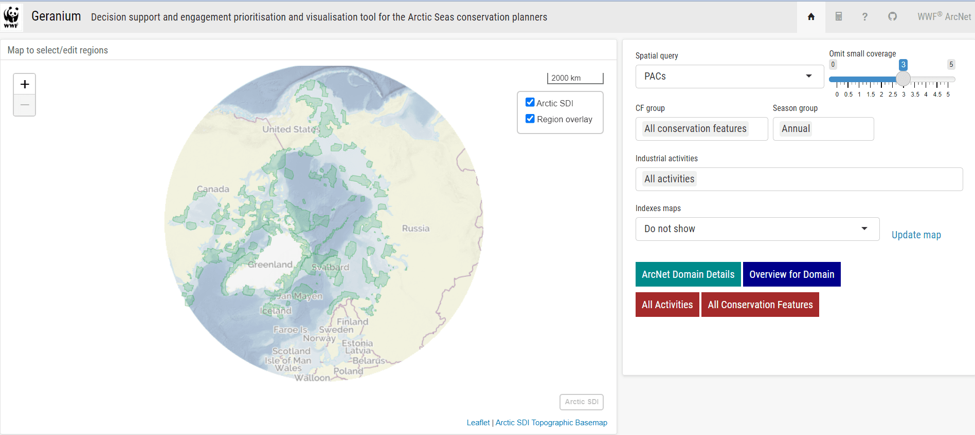 GERANIUM assists stakeholders in making decisions on conservation measures. It visualizes and quantifies conservation concerns and risks arising from industrial activities for marine Arctic areas, and supports discussion and decisions on conservation and management measures inside and beyond the ArcNet PACs.