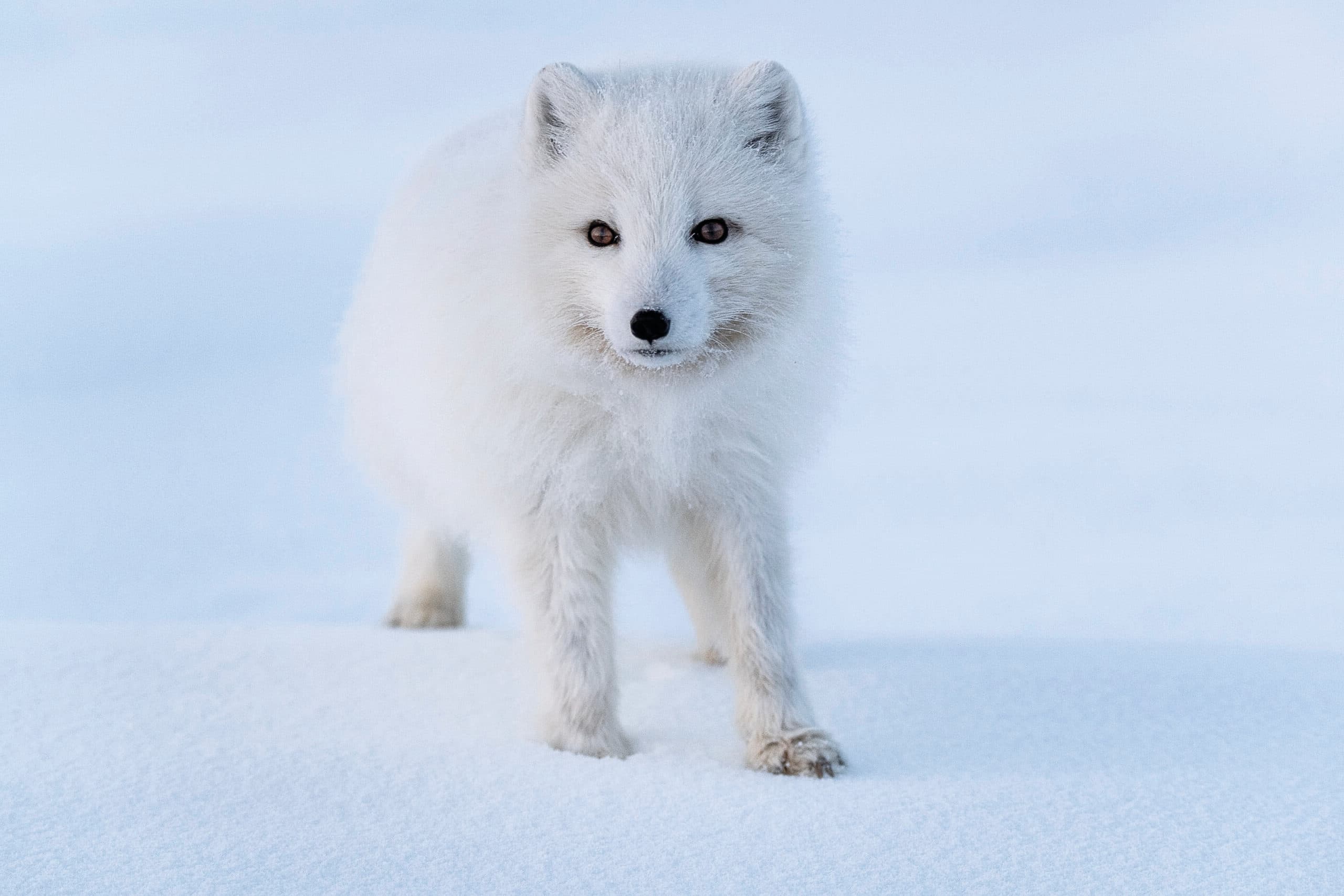 Photo to the right and below: These photos of a polar bear and an Arctic fox were taken in eastern Svalbard. Both species are struggling with the impacts of climate change.