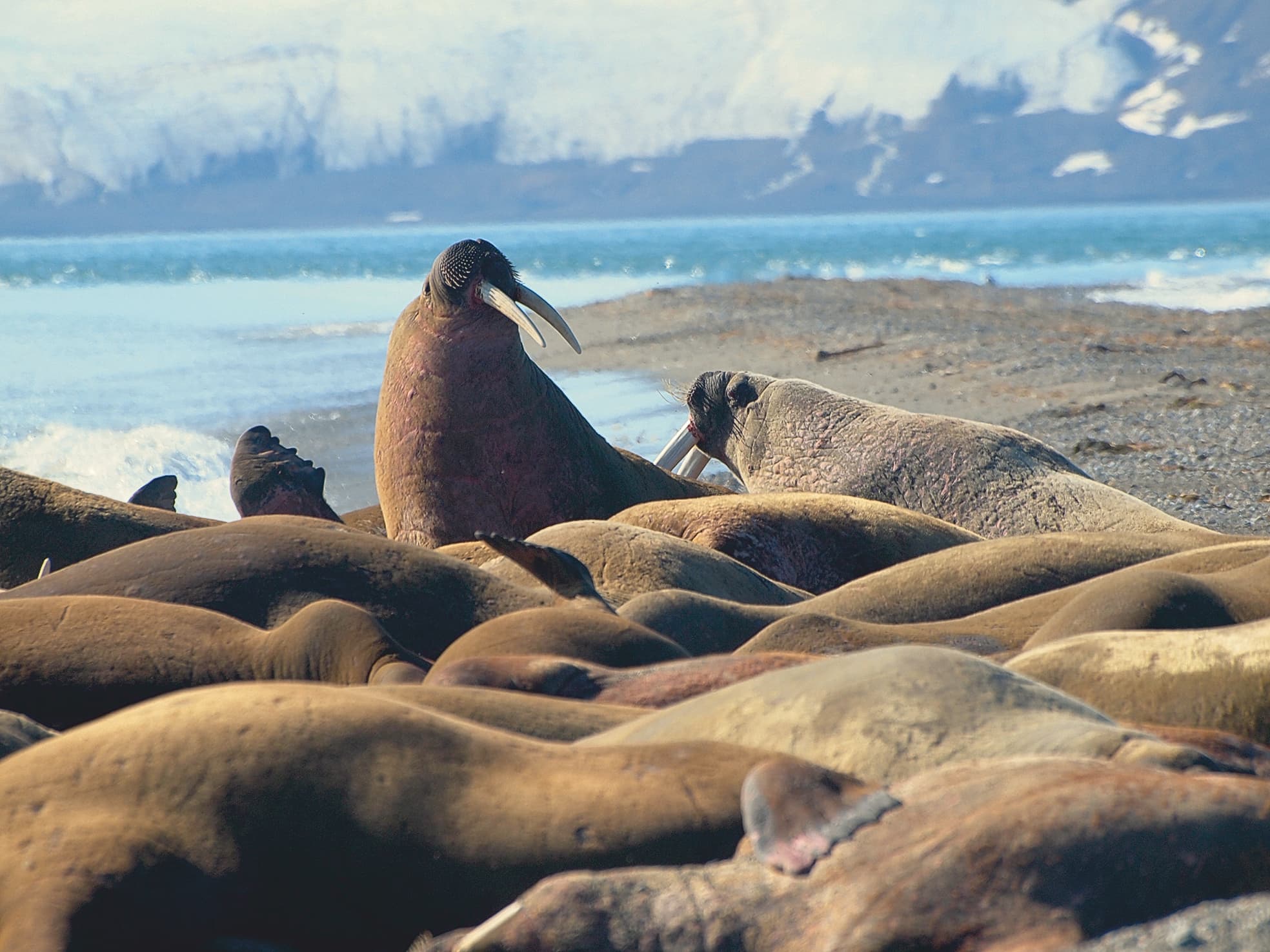 It’s a cool but sunny July day, and our team has spotted a walrus haul-out. We are on a boat at Sarstangen, a narrow spit that extends from Spitsbergen Island to Forelandsundet in northern Norway’s Svalbard Archipelago. We’re anchored about 300 metres to the east to observe the walrus from afar.