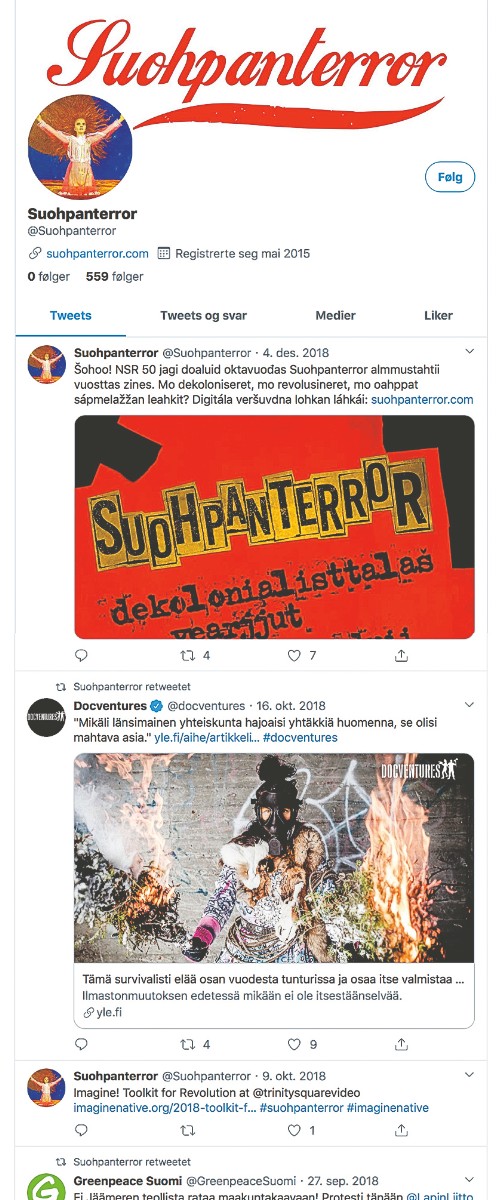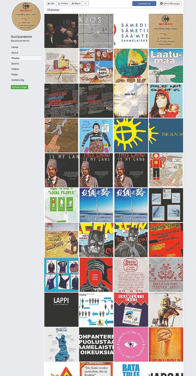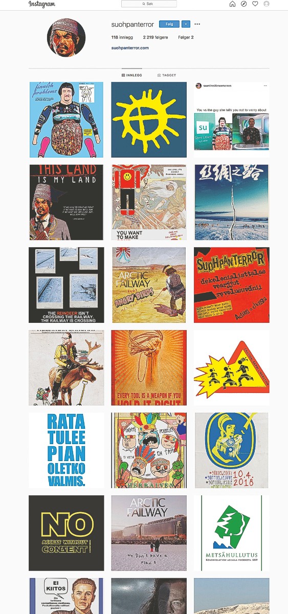 A form of nonviolent resistance, Suohpanterror is like a channel that expresses the feelings of Sámi people. It expresses thoughts and ideas that the Sámi are afraid to say out aloud. When you see a post from Suohpanterror, you can be sure there is real news to read and a deeper meaning beneath the surface.