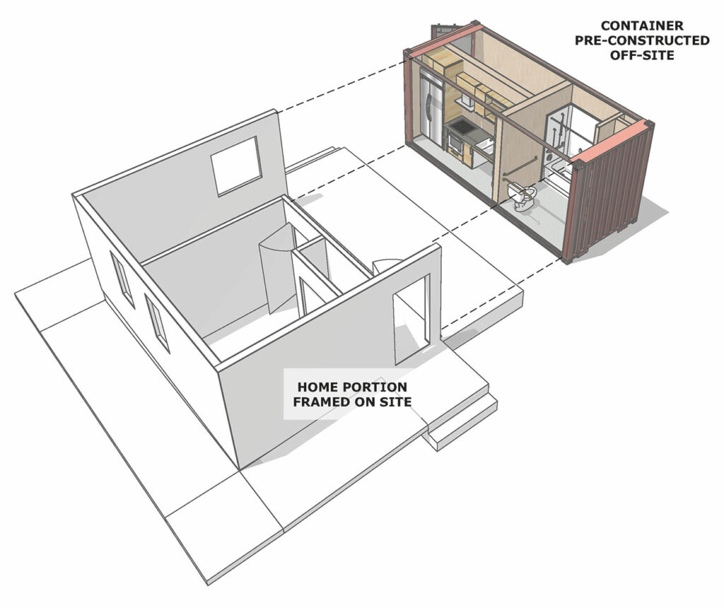 While Unalakleet doesn’t have specialized tradespeople like plumbers and electricians, there are plenty of skilled carpenters. So, researchers built the bathroom and kitchen inside a shipping container in NREL’s Fairbanks lab, where parts and labour were readily available, and the community built the rest of the home around it.