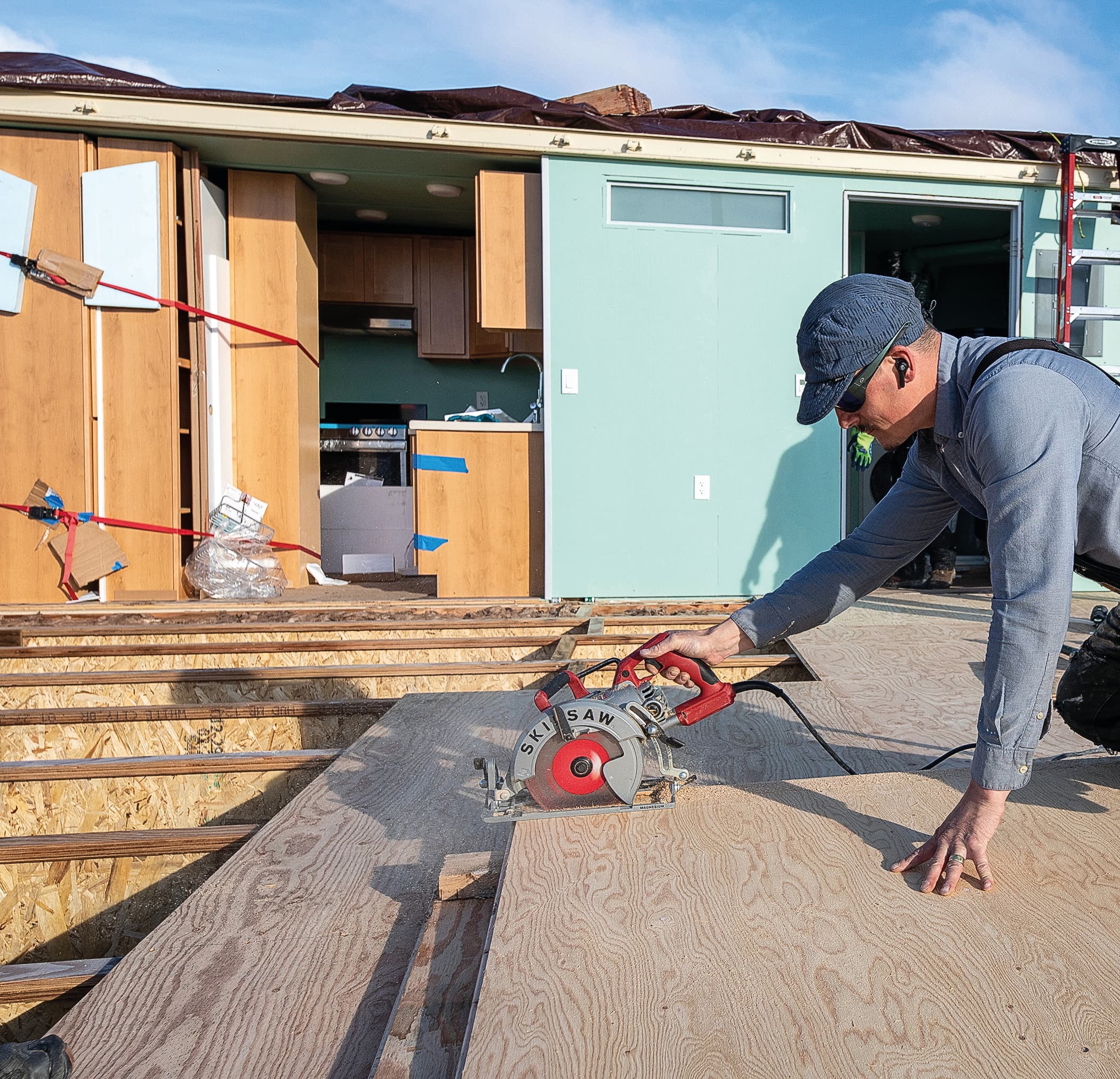 Back at the building site, Williams handed a sheet of plywood up to another carpenter. Then he climbed the ladder and finished building the floor of a home that will, one day, sit on the hillside.