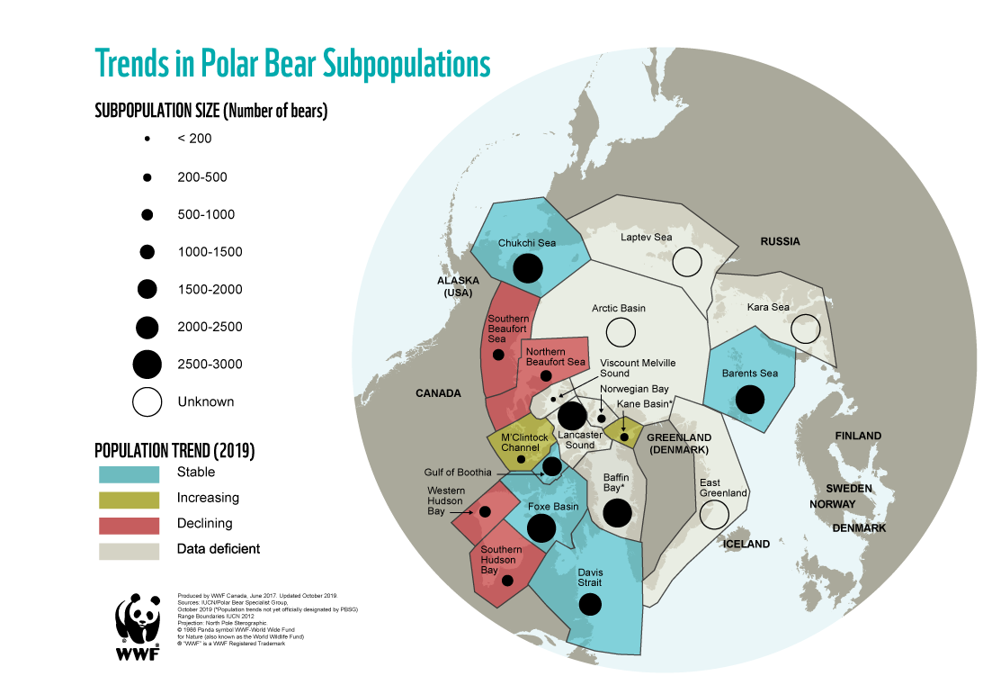 Since the ratification of the agreement, the threat pertaining to the over-harvest of polar bears has largely been eliminated. Norway and Russia have imposed a general ban on hunting, and the other countries manage it according to conservation acts and/or regulations. In Canada, home to more than two-thirds of the world’s total estimated polar bears, populations are co-managed in collaboration with provincial, territorial and federal governments, wildlife management boards, land claim organizations and Indigenous rightsholders. Canada has legislation that recognizes Indigenous rights and land claim agreements to ensure decisions include multiple knowledge systems and meaningful engagement with Indigenous Peoples for effective management.