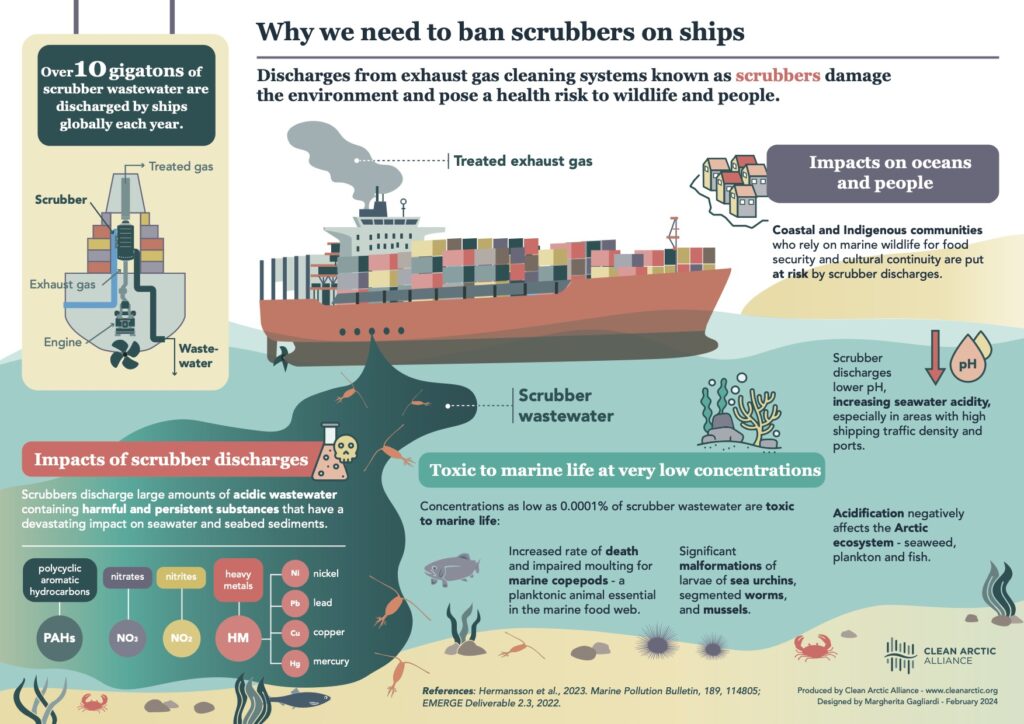 In the meantime, scrubber wastewater restrictions should be rolled out as soon as possible, particularly in delicate ecosystems, such as Arctic waters. In January 2025, scrubbers will once again be on the IMO’s agenda when its Pollution Prevention and Response subcommittee convenes. Several environmental organizations will be present to push for the immediate and long-term actions needed to end marine pollution from scrubbers.