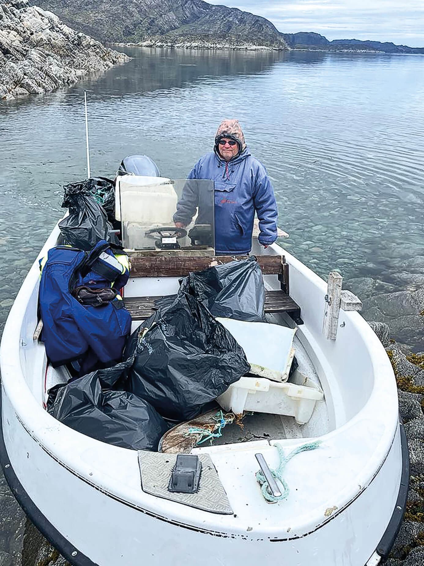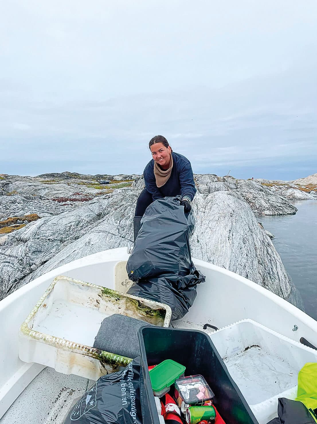 I started eight years ago, when I launched my business. I can only do it in the summertime, when there is no ice or snow. It really depends on the weather—there can’t be any big waves, so I have to choose the right days to do the work. But I spend six days every summer out in my boat collecting plastic and other garbage. Then there are two days that I spend on land, sorting and separating it all so I can bring it to the right place. For example, I put all the rope in one pile and all the fishing nets in another one. The nets are all made of nylon, and the ropes and nets get shipped to Denmark, where they are reused.