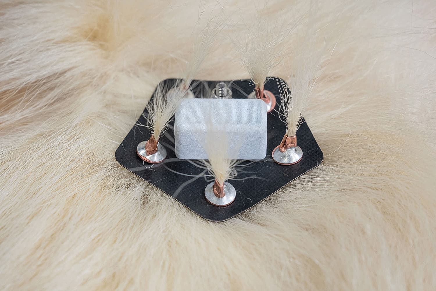 The researchers have developed several prototypes. One is shaped like a pentagon and pulls the bear’s fur through copper tubes, which researchers crimp to hold the fur in place. Another is a metal triangle with strong brushes resembling pipe cleaners on each side that get caught in the bear’s fur.