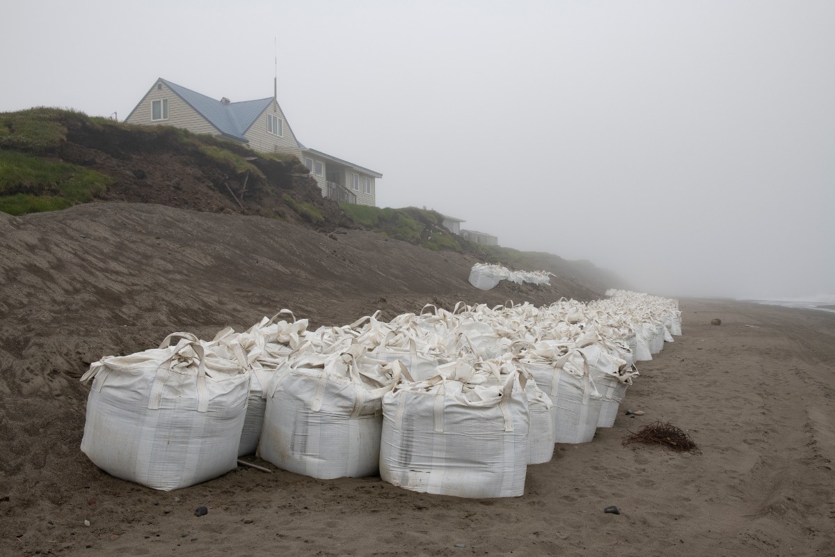 Building a seawall out of sandbags seemed like a good place to start, but it hasn’t been enough to halt the shoreline erosion. A more permanent, effective structure would cost in the vicinity of USD $380 million. © Chris Linder/WWF