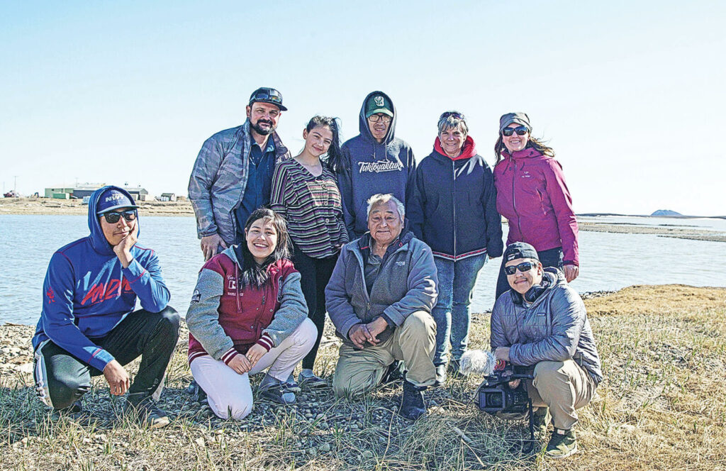 Group photo taken after the youth interviewed the late Randal “Boogie” Pokiak for the youth-led film, Happening to Us. Row 1 left to right: Jaro Malanowski, Eriel Lugt, Brian Kikoak, Michele Tomasino and Maéva Gauthier. Row 2 left to right: Darryl Tedjuk, Carmen Kuptana, Randal “Boogie” Pokiak and Nathan “Muk” Kuptana.